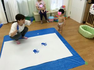 フィンガーペインティング&ボディーペインティグをして