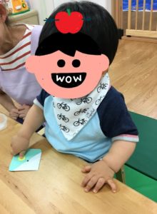 四角と雫型の画用紙に糊を使ってペタペタと貼って完成☆