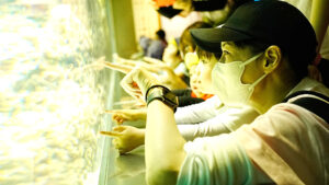 今回の目的地は、貸切バスを利用して葛西臨海公園の水族館。